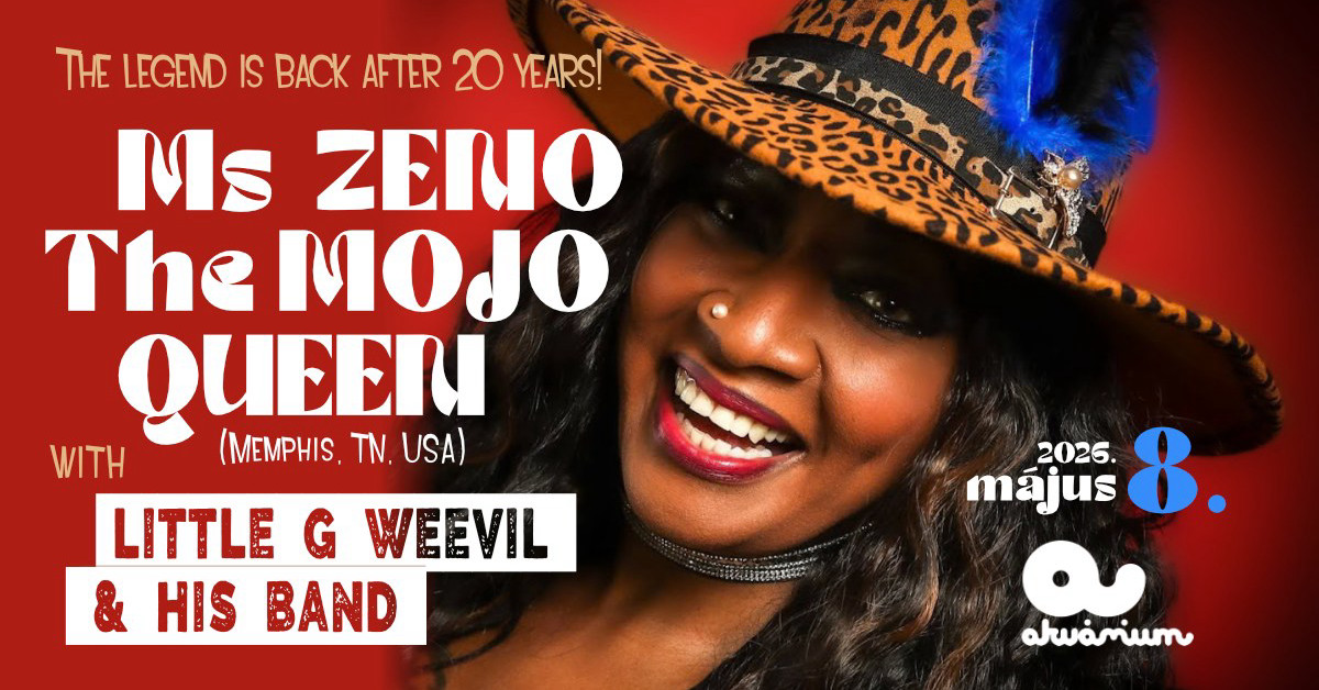 máj8Ms Zeno The Mojo Queen with Little G Weevil & His Band @ KisHall 2026.05.08.máj. 8., péntek 19:00Akvárium Klub, Budapest