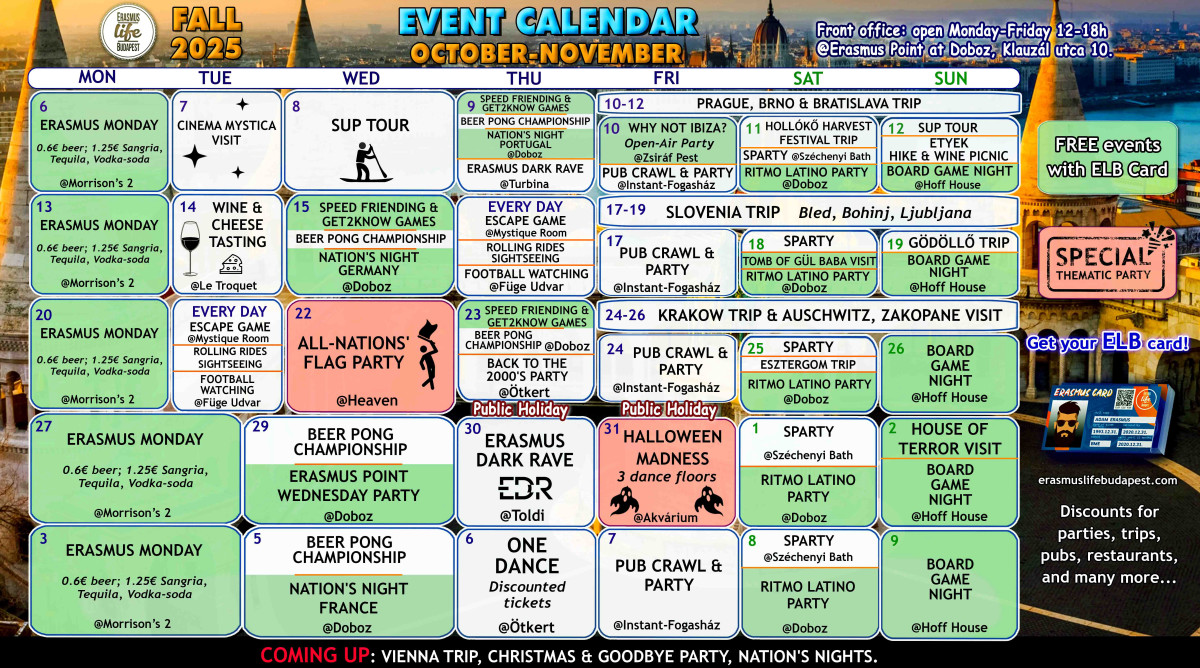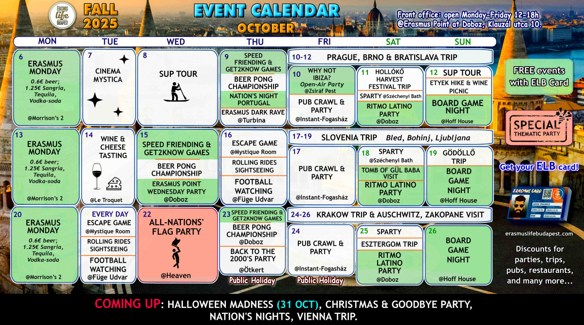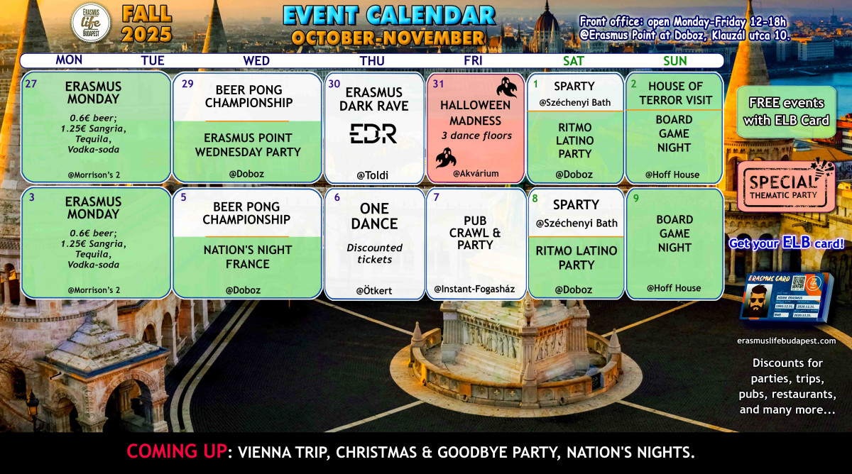 Find all our events here too 👉 https://www.facebook.com/ErasmusLifeBudapest/events