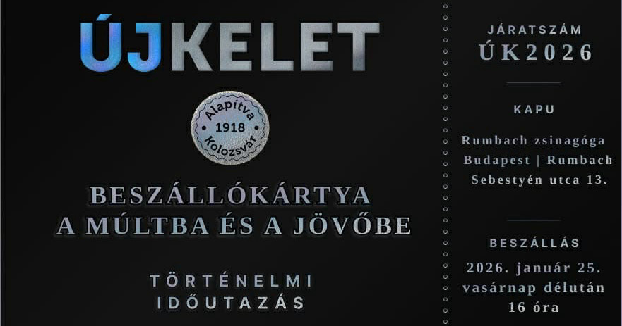 Az Új Kelet, izraeli magyar nyelvű független lap, időutazásra hív minden kedves olvasót – ezúttal Magyarországra érkezik. Várjuk önöket a megváltozott formátumú Új Kelet bemutatójára 2026. január 25-én, vasárnap délután 4 órakor a Rumbach zsinagógába.