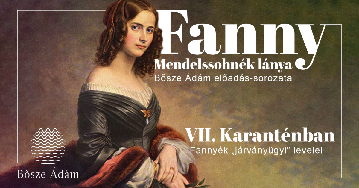 7. Karanténban – Fannyék „járványügyi” levelei 1830-ban Rebecka Mendelssohn, Fanny és Felix húga elkapta a kanyarót. Utána Paul és Felix is ágynak dőlt, ráadásul a fertőzésveszély miatt el kellett őket különíteni. A betegség ellenére leveleztek egymással. A Mendelssohn-gyerekek egymás közti kommunikációjáról is szól a Fanny – Mendelssohnék lánya sorozat hetedik előadása. Zongorán közreműködik Laufer Szilvia