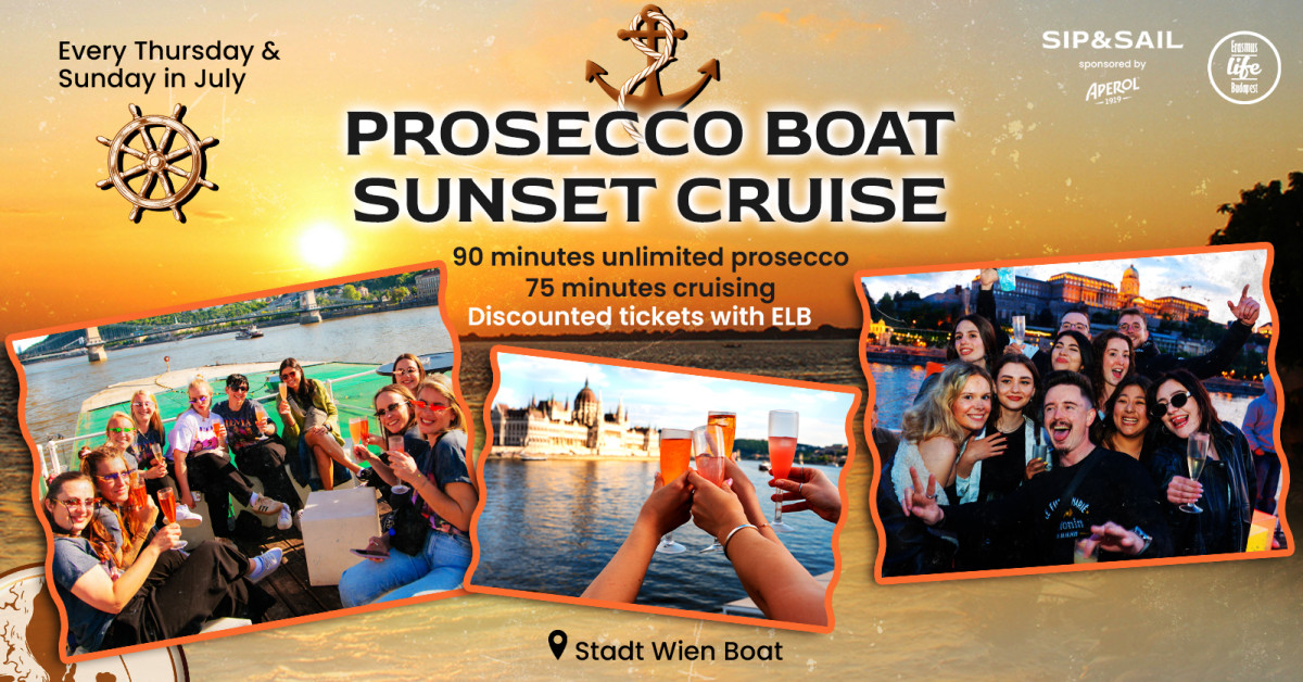 Jump on board Budapest's favourite prosecco cruise for 1.5hrs of freedom, fun and sunset vibes 🌅🥂