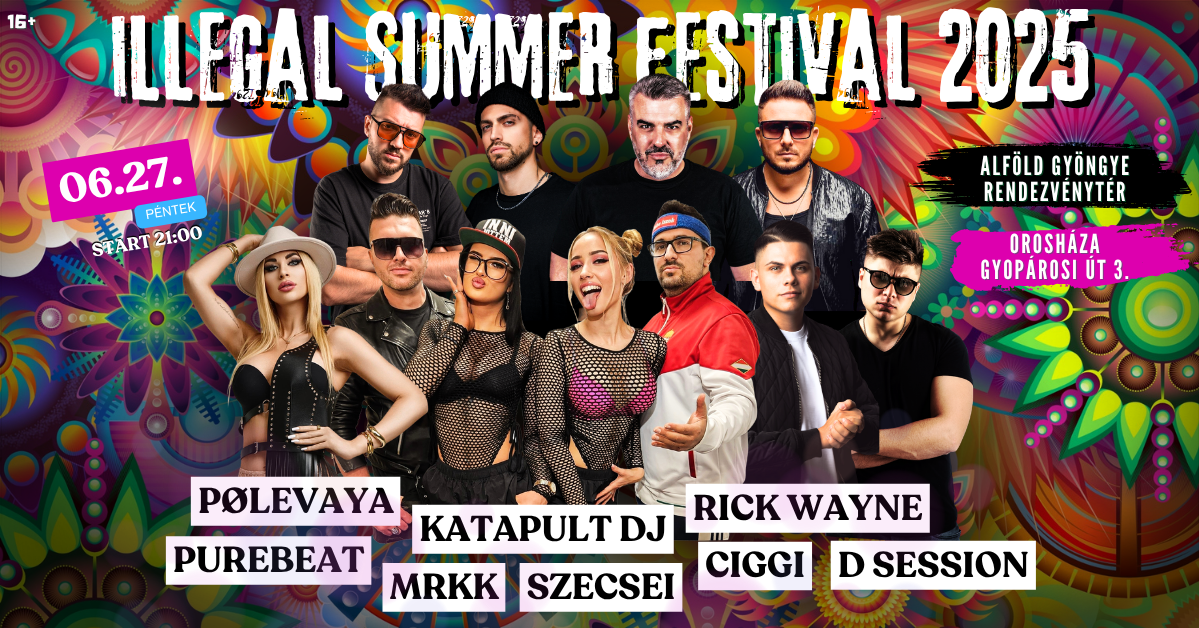 Készülj a legszínesebb éjszakádra Orosházán - Érkezz időben és ugorj velünk fejest a nyárba! Jön az Illegal Summer Festival 2025.