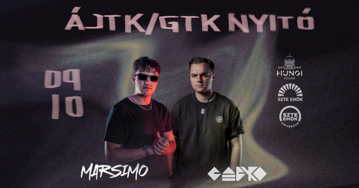 Az SZTE EHÖK Univerzum bemutatja: ÁJTK & GTK NYITÓ Dátum: 2025. Szeptember 10., Szerda Helyszín: Hungi Vigadó Fellépők - GABRO - MARSIMO