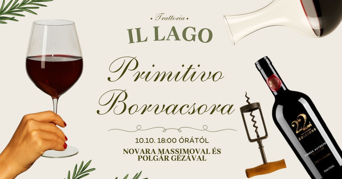 Fedezze fel Puglia ikonikus Primitivo borait a Trattoria Il Lago különleges gasztronómiai estjén, október 10-én.