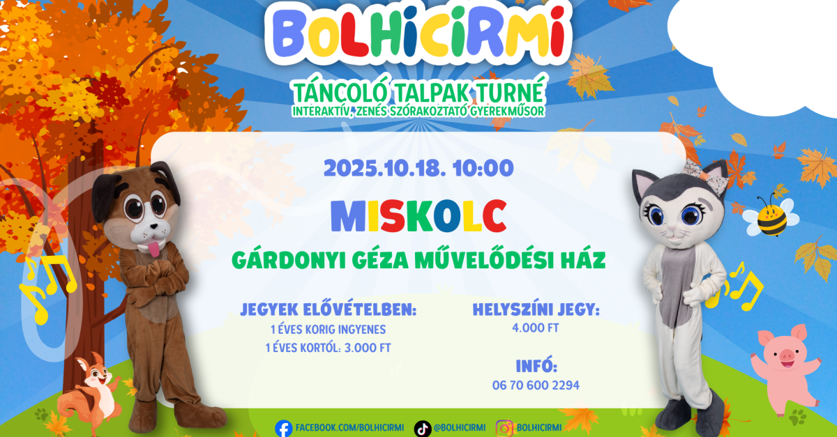 đ Bolhicirmi â TĂĄncolĂł Talpak TurnĂ© MISKOLCON! đ đ GĂĄrdonyi GĂ©za MƱvelĆdĂ©si hĂĄz Miskolc đ 2025. 10.18. SZOMBAT đ KezdĂ©s: 10:00
