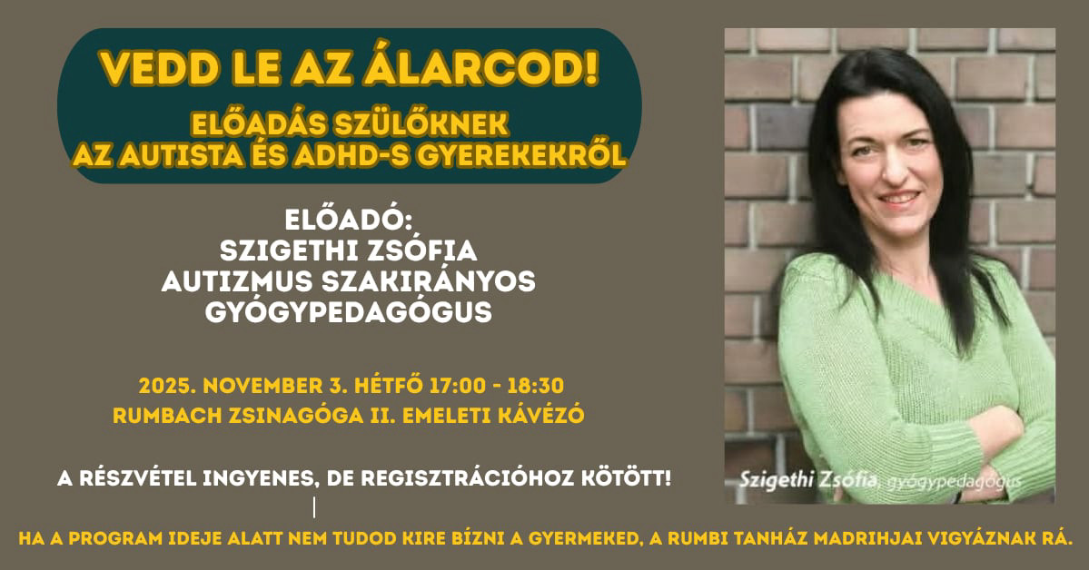 2025. november 3-án, hétfőn 17.00 és 18.30 óra között Szigethi Zsófia, autizmus szakirányos gyógypedagógus várja az érdeklődőket a Rumbachban,