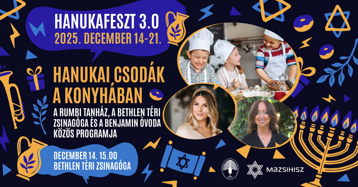 A GasztroHanuka egy vidám, ízekben és élményekben gazdag családi nap, ahol minden generáció megtalálja a maga ünnepi csodáját. A gyerekek saját vegán hanukai desszertet készíthetnek, a felnőttek pedig churros- és lángossütés közben élhetik át a közös főzés örömét. A HanukaFeszt 3.0 részeként induló nagy kaland 2025. december 14-én, vasárnap délután 3 órakor veszi kezdetét a Bethlen téri zsinagógában – ahol illatok, nevetések és apró hanukai csodák várnak mindenkit.