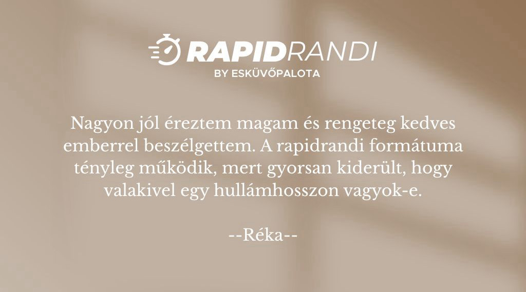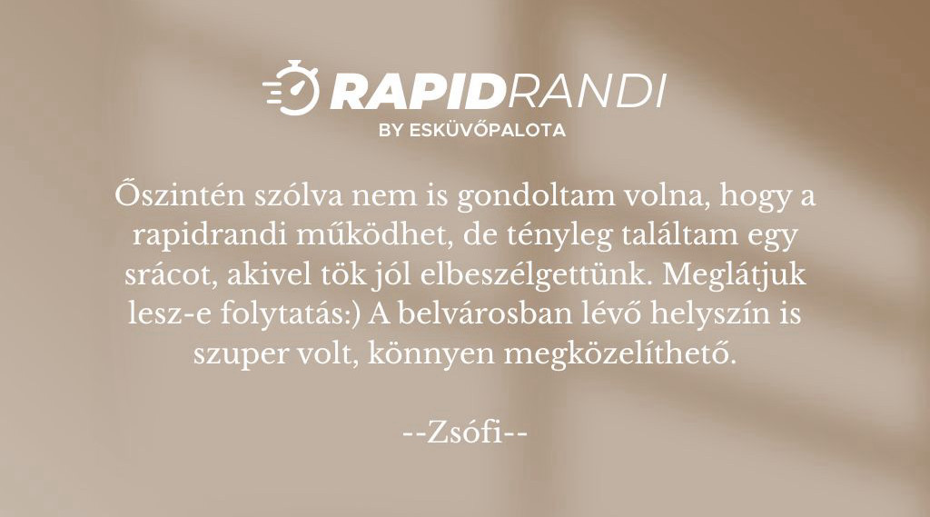 --- Ha lemaradtál az eseményről (elfogyott a jegy), nézd meg további időpontjainkat! Vagy iratkozz fel várólistánkra, értesítünk, ha szabadul fel jegy, illetve akkor is, ha valamelyik randira kedvezményesen lehet jönni :) TOVÁBBI ESEMÉNYEK https://cooltix.hu/b/eskuvopalota VÁRÓLISTA https://eskuvopalota.hu/rapidrandi/