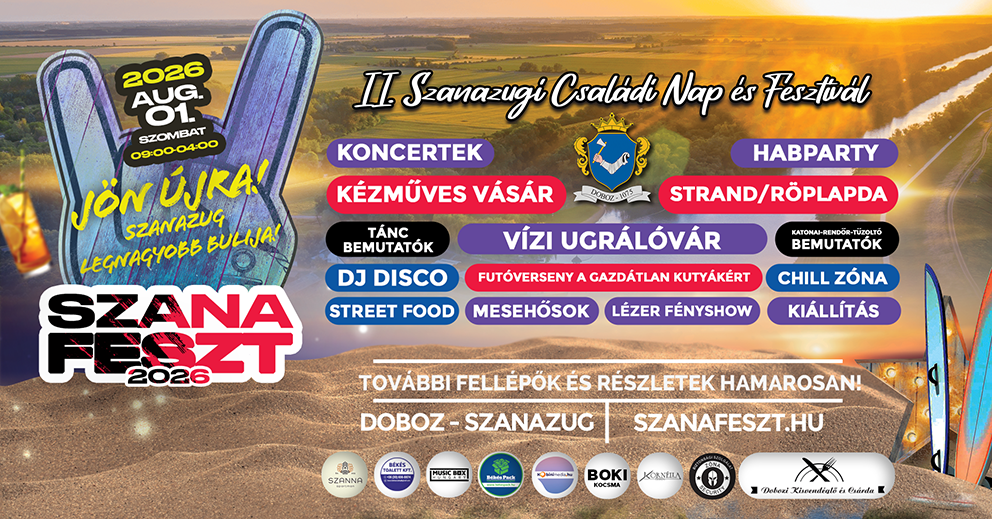 🎉 𝗦𝗭𝗔𝗡𝗔𝗙𝗘𝗦𝗭𝗧 𝟮𝟬𝟮𝟲 – 𝗜𝗜. 𝗦𝘇𝗮𝗻𝗮𝘇𝘂𝗴𝗶 𝗖𝘀𝗮𝗹𝗮́𝗱𝗶 𝗡𝗮𝗽 & 𝗙𝗲𝘀𝘇𝘁𝗶𝘃𝗮́𝗹 📍 Helyszín: Doboz, Szanazugi Szabadstrand