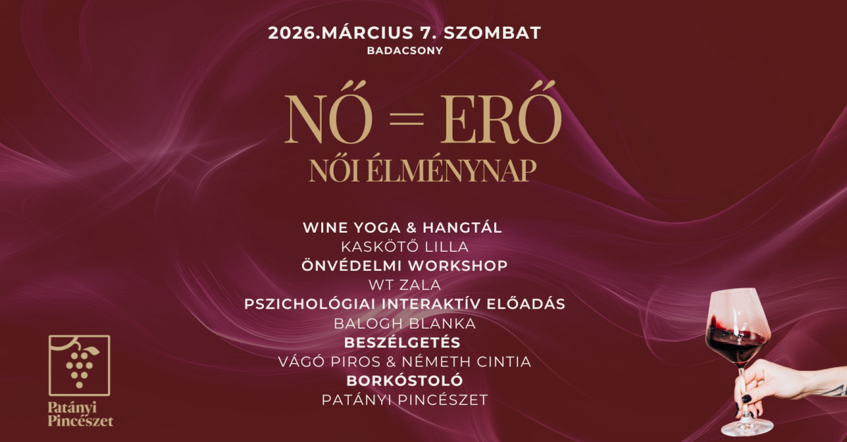 NŐ = ERŐ – nőnapi élménynap Badacsonyban: jóga, önvédelem, pszichológiai előadás, beszélgetés Vágó Pirossal, borkóstoló.