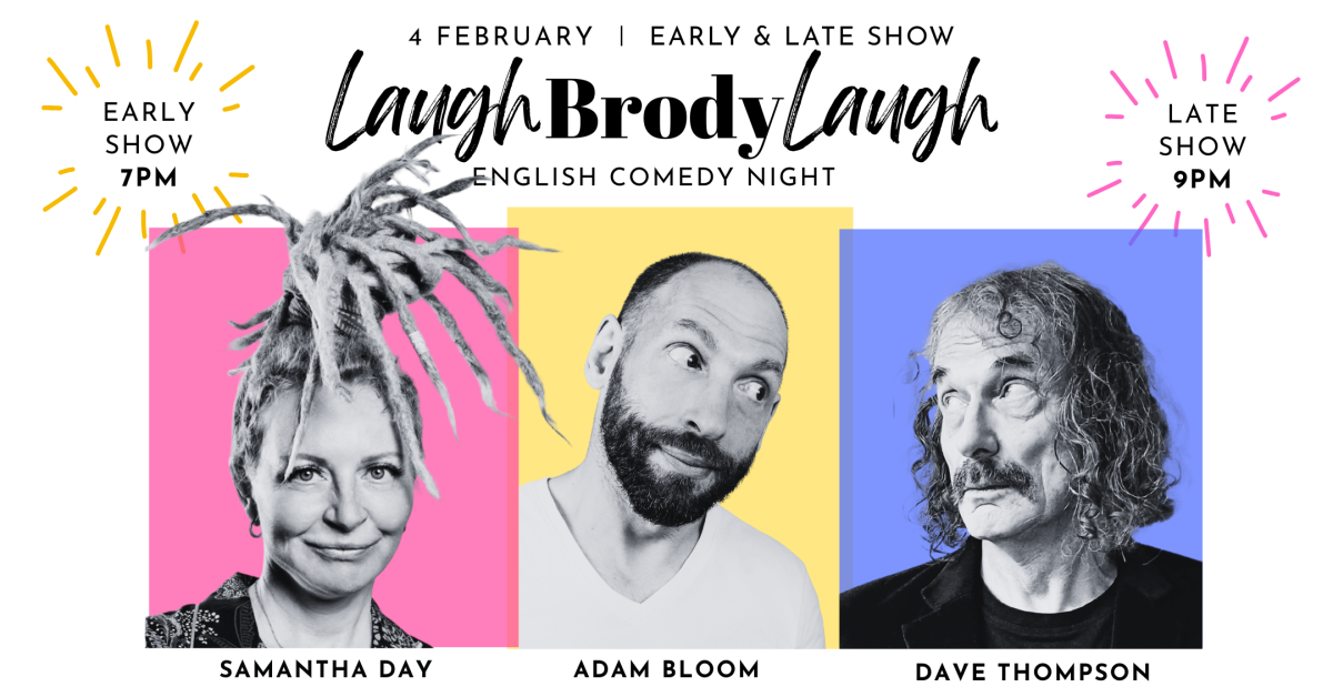 Laugh Brody Laugh: Double headliner night with Adam Bloom & Samantha Day, hosted by Dave Thompson. Two shows, one ridiculously funny Wednesday!