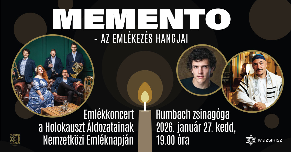 2026. január 27-én, kedden este 7 órakor a Holokauszt Áldozatainak Nemzetközi Emléknapjához kapcsolódva különleges zenei utazásra hívjuk az emlékezőket a Rumbach Sebestyén utcai zsinagógába. Az est során a Voice & Brass együttes tolmácsolásában csendülnek fel az emlékezés hangjai, közreműködik Nógrádi Gergely főkántor és Medveczky Balázs színművész. Az ülőhelyek elfoglalása érkezési sorrendben történik.