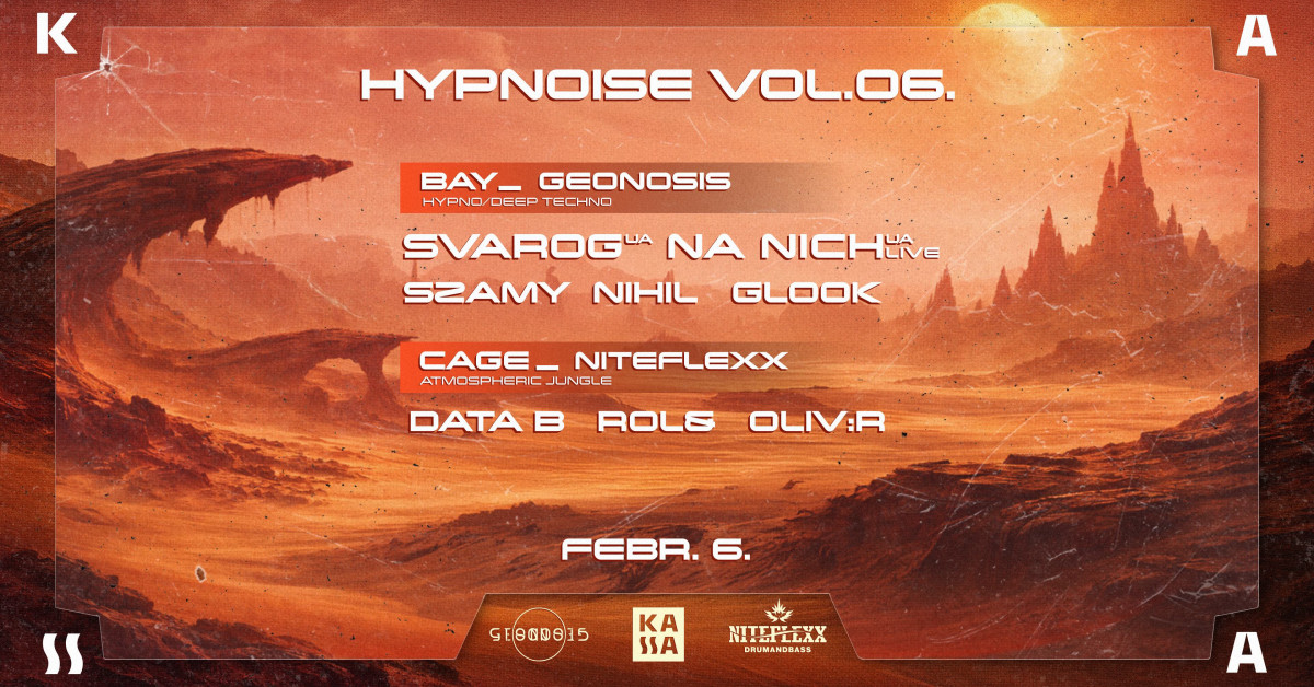 Február 6-án kéttermes éjszaka a KASSA hajón: hypno és deep techno a Geonosis Bay_ben, atmoszférikus jungle a Niteflexx Cage_ben.