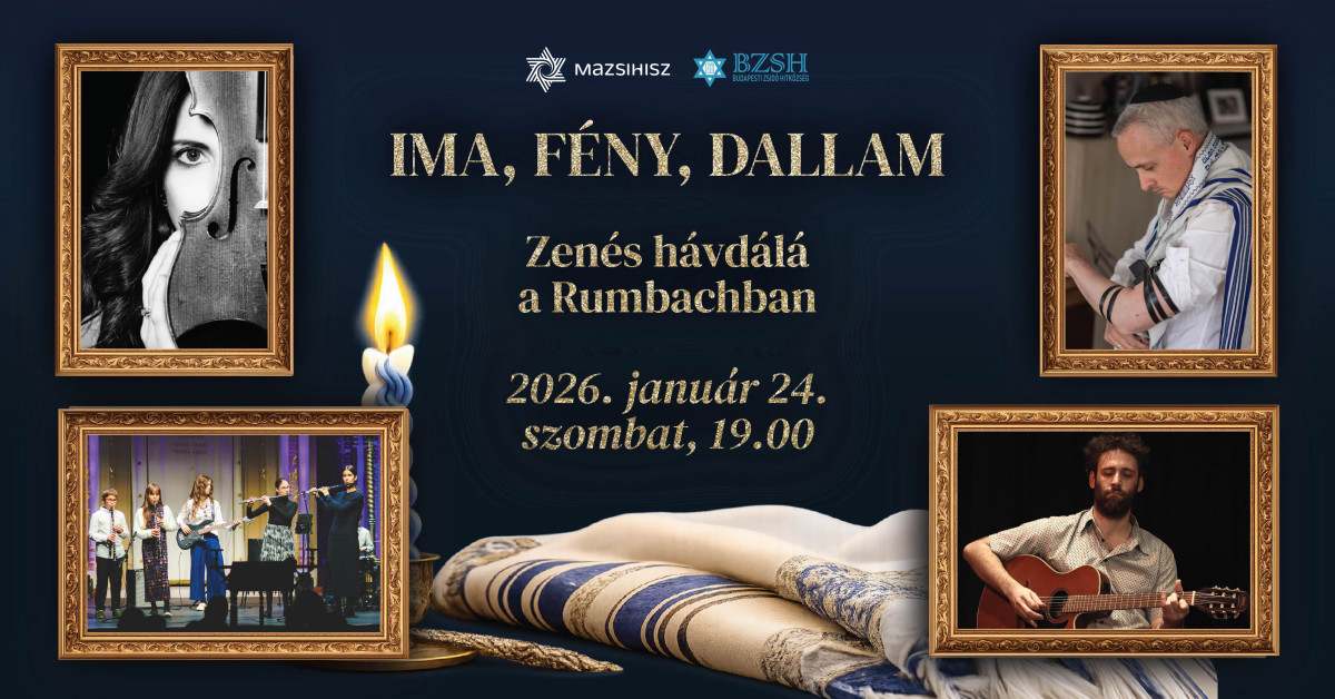 A Rumbach, a Bethlen téri, a Bét Jehuda és a Bét Sálom zsinagóga körzetek, a Rumbi Tanház, valamint Deutsch Péter, Radnóti Zoltán és Szántó-Várnagy Binjomin rabbik, továbbá meghívott hazai és nemzetközi fellépőink szeretettel invitálnak mindenkit egy különleges élőzenével színesített hávdálá szertartásra 2026. január 24-én, szombaton este 7 órakor a Rumbach Sebestyén utcai zsinagóga szakrális terébe. Kapunyitás: 18.30 óra.