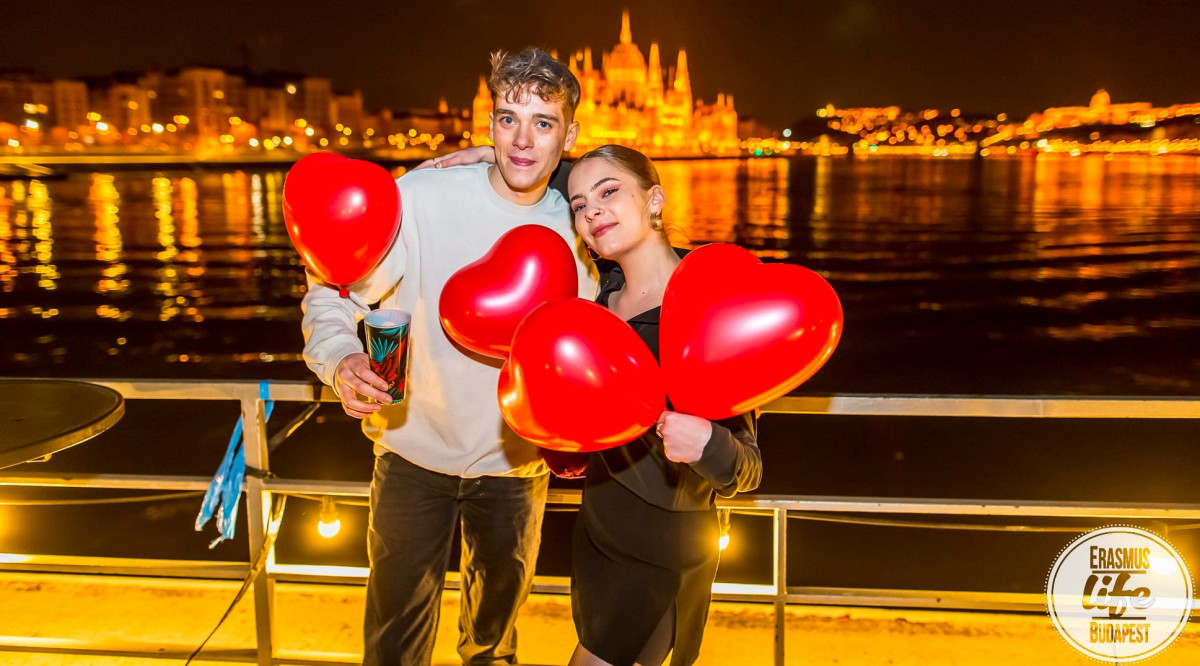 WHAT CAN YOU EXPECT? 🎉 3 hours long boat party 🛳️ 1,5 hour long river cruise with the beautiful night view of Budapest! 🥳 Boat departs at 20:45! 💘 Costumes & Valentine's day themed decoration 💗 🏹 Match-making fun games ⛵ Indoor Dance Floor & Boat terrace 🎧 Great music by the best DJs 📷 Party photo 💃 All international party people