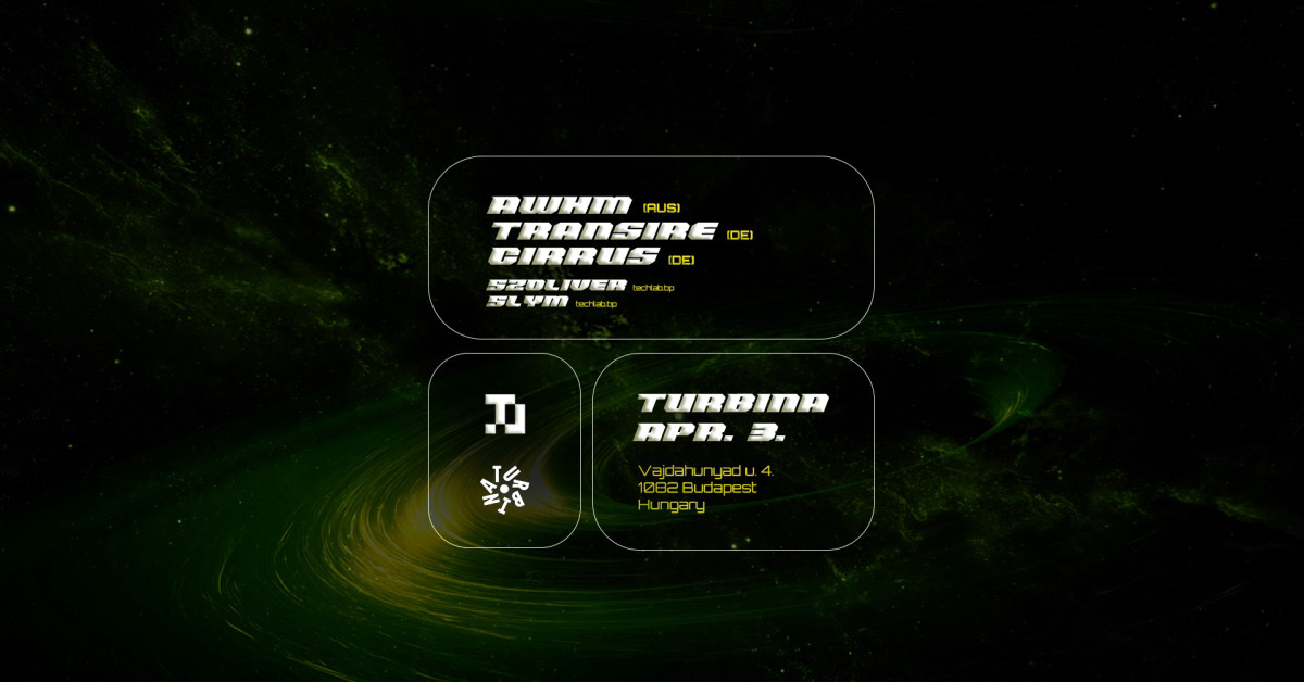 techlab.bp invites AWHM (AUS), Transire b2b Cirrus (DE) @ Turbina, Nagyterem
