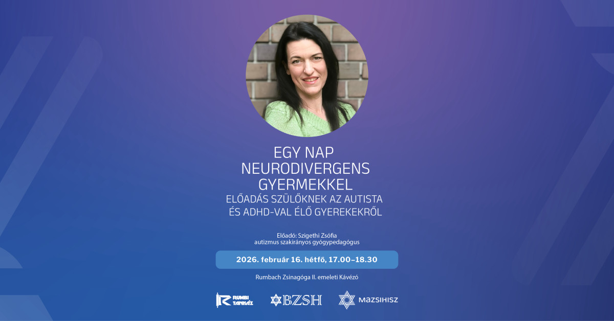A Rumbach Zsinagóga kávézójában 2026. február 16-án, hétfőn 17.00 órakor folytatódik a Rumbi Tanház nagy sikerű előadássorozata. Ezúttal azt a kérdést járjuk körül, mit jelent a mindennapokban együtt élni egy neurodivergens – autizmussal vagy ADHD-val élő – gyermekkel.