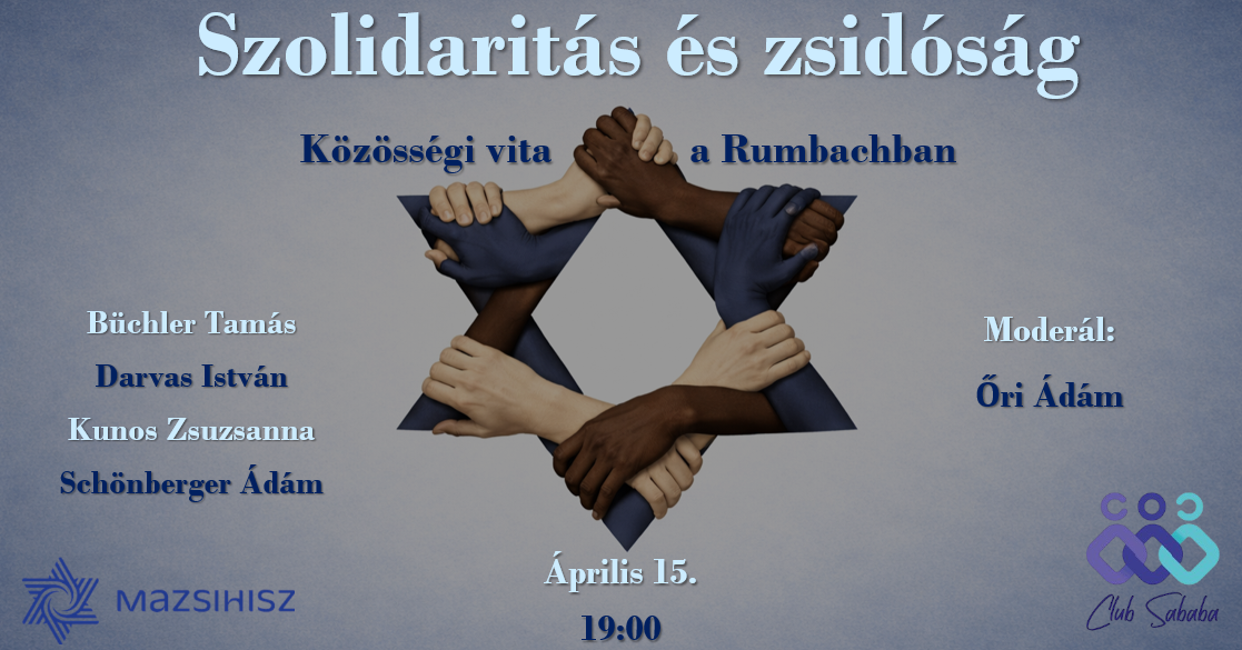 Milyen vallási és kulturális gyökerei vannak a szolidaritásnak a zsidó hagyományban? Mennyire szolidáris ma a zsidó közösség a saját tagjaival – és más, rászoruló csoportokkal? Hol húzódnak a szolidaritás határai? És milyen lenne az ideális viszony egymáshoz egy sokszínű társadalomban? Az est nemcsak azoknak szól, akiknek már van határozott véleményük, hanem azoknak is, akik inkább kérdésekkel érkeznek. Gyere el hallgatónak – és ha kedved van, kapcsolódj be a beszélgetésbe!