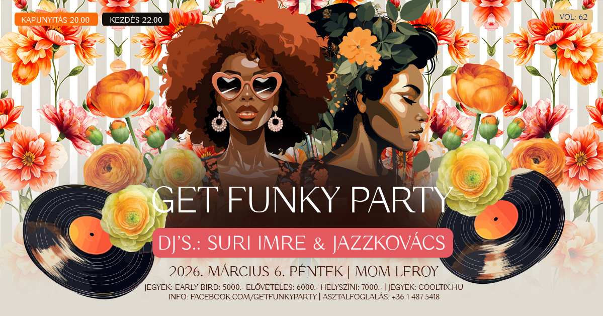 Get FUNKY Party a legjobb fekete zenékkel. D.J.'s: Suri Imre&Jazzkovács László.