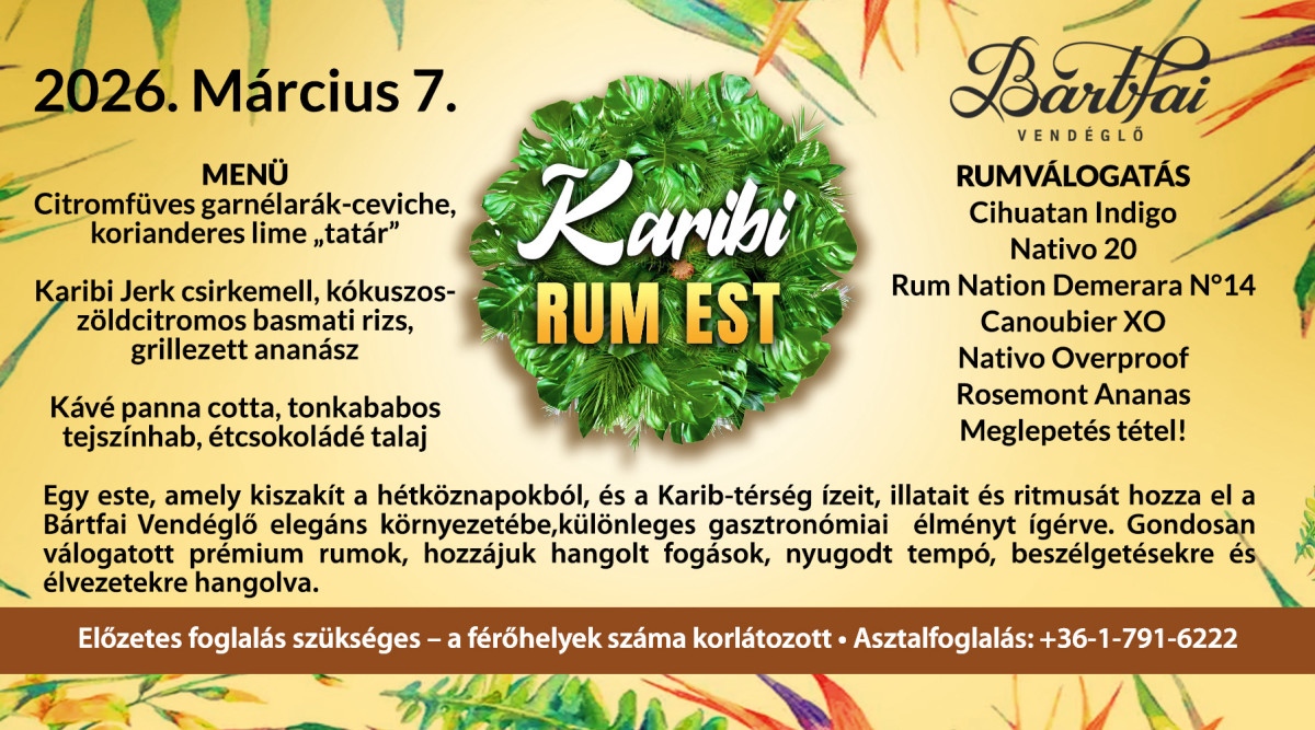 Karibi Rum Vacsoraest a Bártfai Vendéglőben