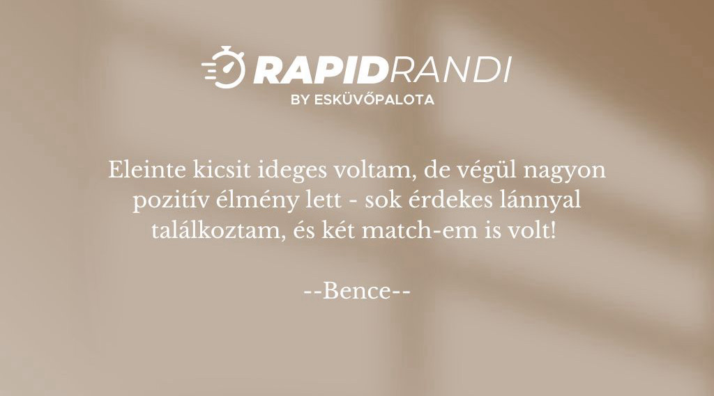 --- Ha lemaradtál az eseményről (elfogyott a jegy), nézd meg további időpontjainkat! Vagy iratkozz fel várólistánkra, értesítünk, ha szabadul fel jegy, illetve akkor is, ha valamelyik randira kedvezményesen lehet jönni :) TOVÁBBI ESEMÉNYEK https://cooltix.hu/b/eskuvopalota VÁRÓLISTA https://eskuvopalota.hu/rapidrandi/