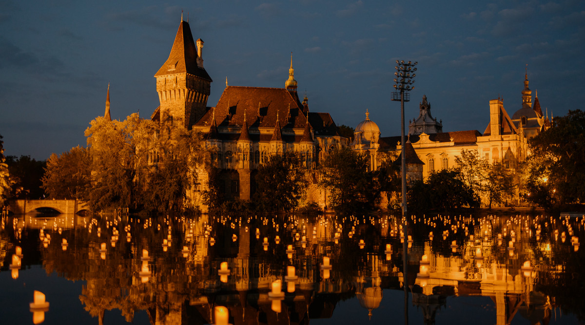 The VIP area, located in the upstairs grand hall of the City Park Ice Rink, offers an exclusive experience with a stunning panoramic view of the candlelit lake, Vajdahunyad Castle, the audience, and the main stage.